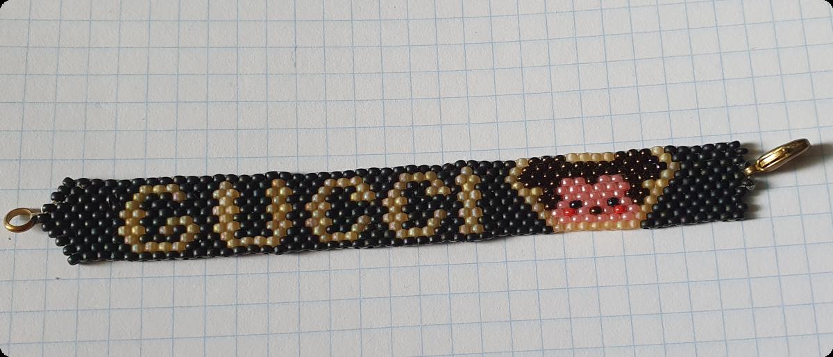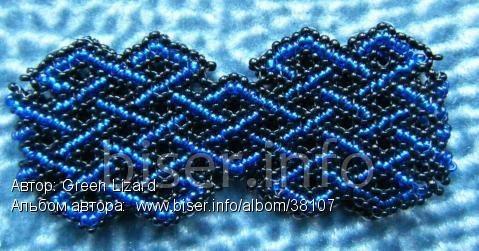 У меня был такой мужской/унисекс браслет. На самом деле их было два, первый, как настоящую фенечку, плела для конкретного человека в подарок и прямо у него на руке замыкала в кольцо, чтобы носил не снимая. С размером вышло интересно — у браслета большой раппорт, придумывая узор, я бы ни за что не рассчитала так, чтобы он пришелся по руке — он сам, абсолютно сам придумался, рассчитался и сплелся и сел как влитой. Второй я позже плела уже для себя, подбирая черный бисер чуть помельче, чем в первом браслете, и тоже угадала с размером — его можно было снять-надеть, но с большим трудом, и на запястье сидел плотно. За исключением этой почти мистики мужских украшений я практически не плела. Только один кулон-галстук захватил сын и довольно долго носил.