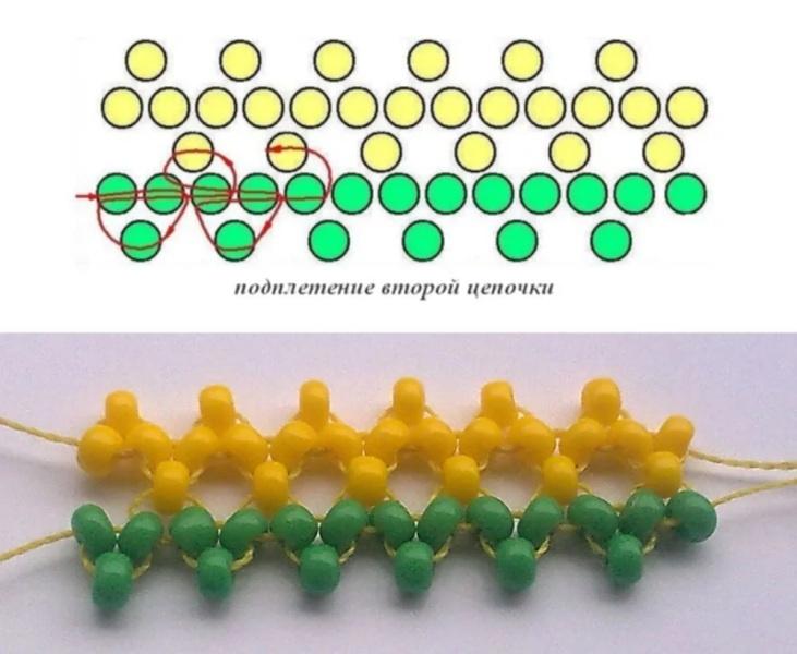 — квадратным жгутом с вплетенными камнями/бусинами,