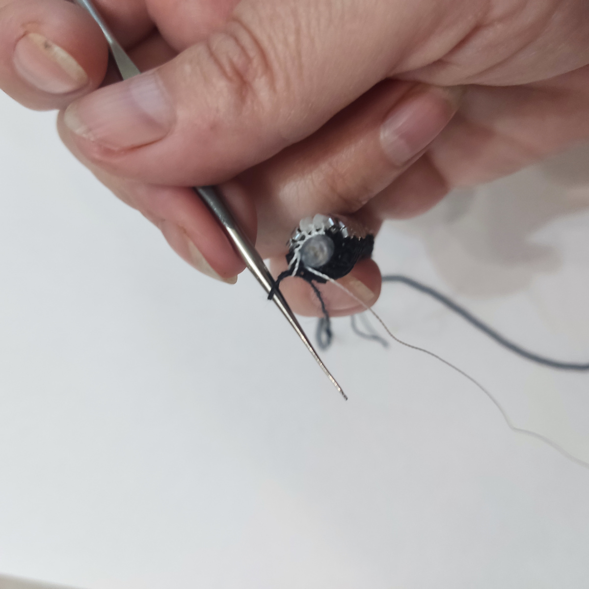 Оставляем в покое белый хвостик и продолжаем вязать черные бисерины черной ниткой.