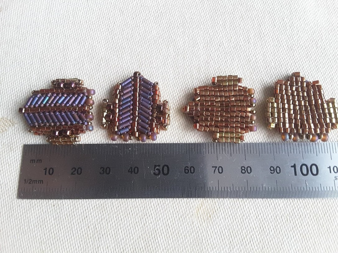 Потом я решила, что они слишком узкие, и увеличила ширину на 1 ряд с каждого края, а бисерины в пазах перестали быть в шахматном порядке (если честно — просто поначалу ошиблась, а потом так и оставила):