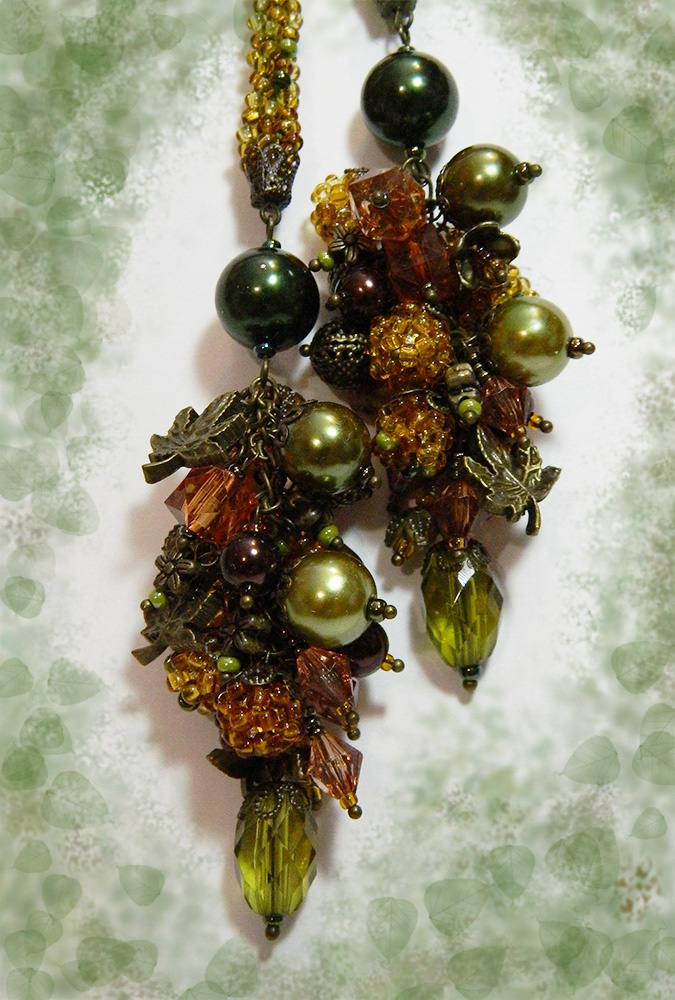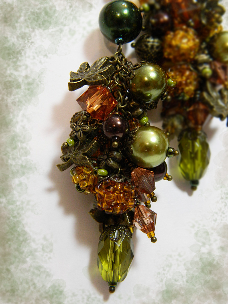В кистях, помимо обычных бусинок, еще десять штук плетеных из того же микса и из микса одних «топазов». С бронзовыми чашечками получаются такие интересные ягодки. Фото, к сожалению, так себе…