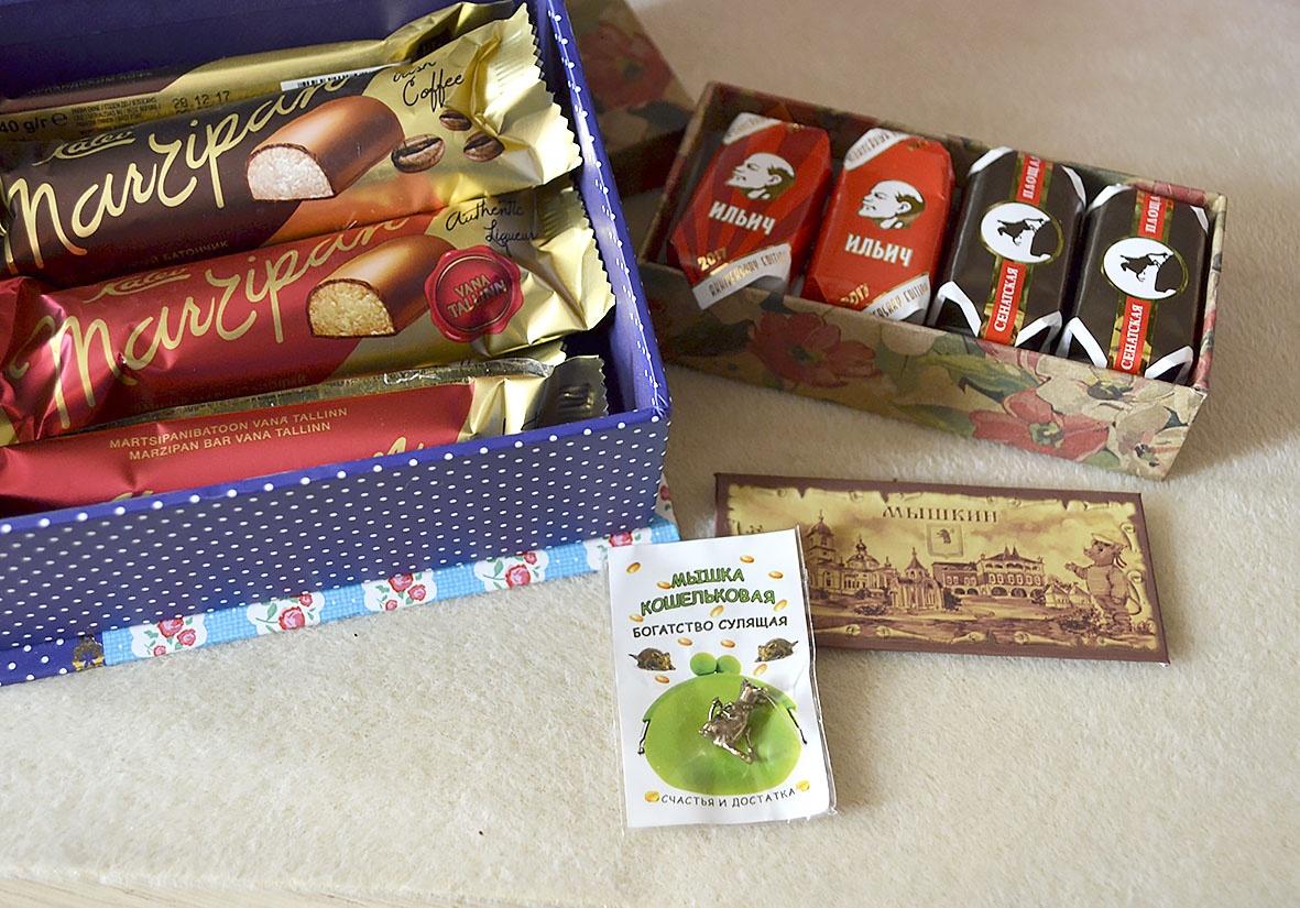 В общем, сладкий подарок такой, привет из СССР интернациональный, марципан Эстонский, конфеты Белорусские и во главе Ленин.