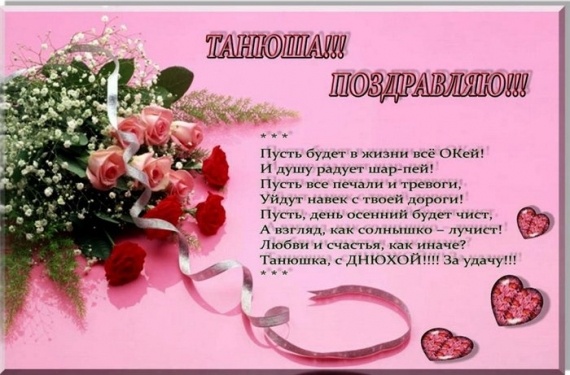 Танюша, с Днем Рождения! Пусть в твоем доме всегда живет радость, творческая муза тебя никогда не покидает, кошелёк всегда будет полон «капусты» (ну и парочка хорошеньких заначек на всякий случай)!