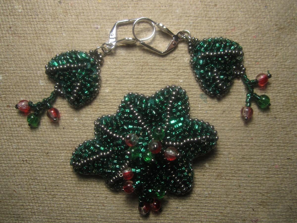 Думаю, серьги получились большеваты. Но мельче я бы не смогла сделать. Размеры получились такие: брошь – 5,5х4 см; серьги примерно 2х 2 см, со швензами и подвеской 2х6см.