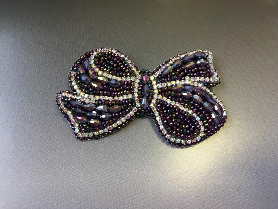 Когда первый делала, тоже немного трудновато было, а потом я на более узких местах бисер помельче выбирала. Это у меня во всех брошах китайский бисер, но он калиброванный. Иногда некоторые помельче попадаются.