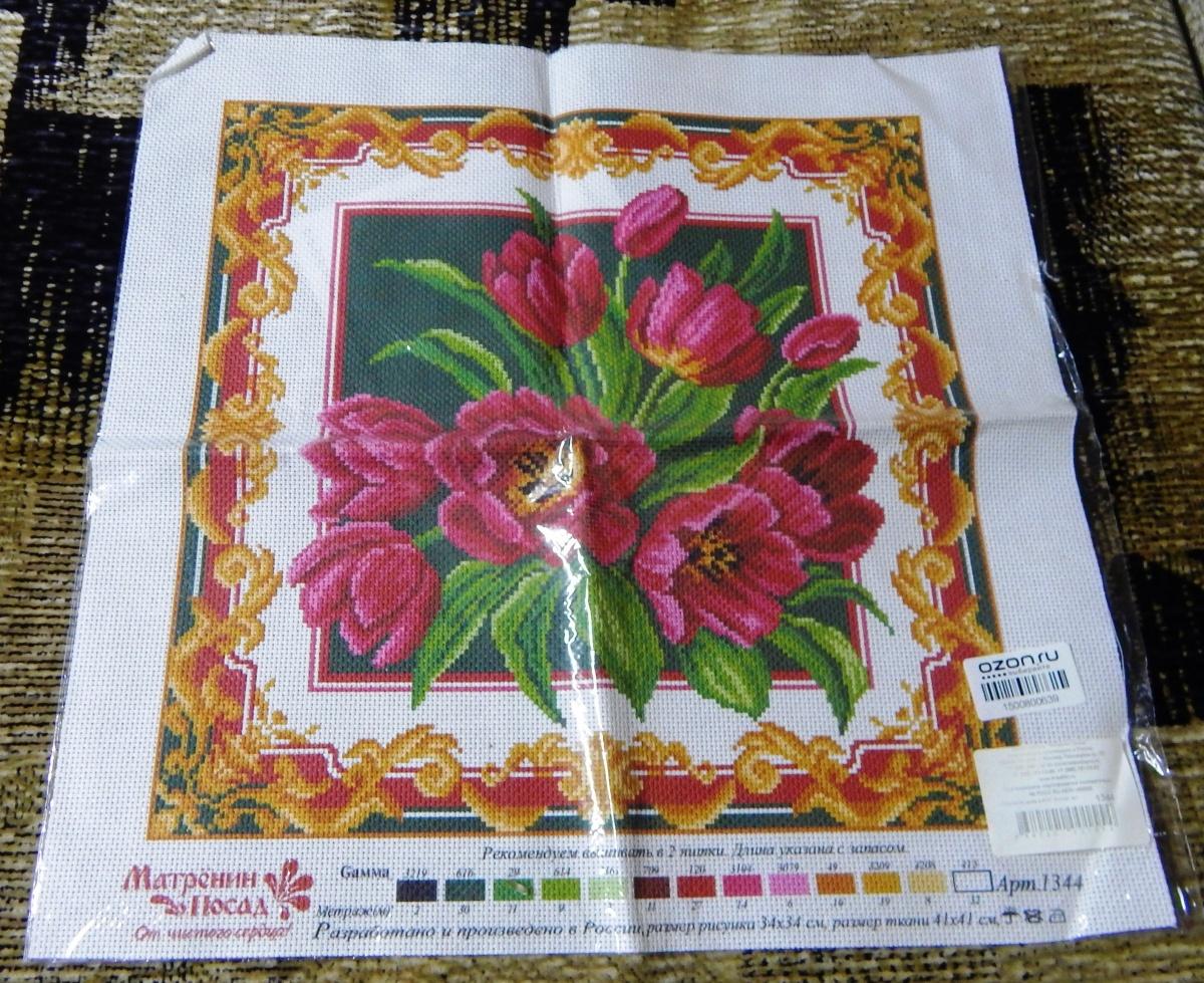 Лот 8. Канва с нанесенным рисунком Матренин посад. Размер 41х41 см. Примялась, нужно будет аккуратно отпарить. Цена — 150 руб.