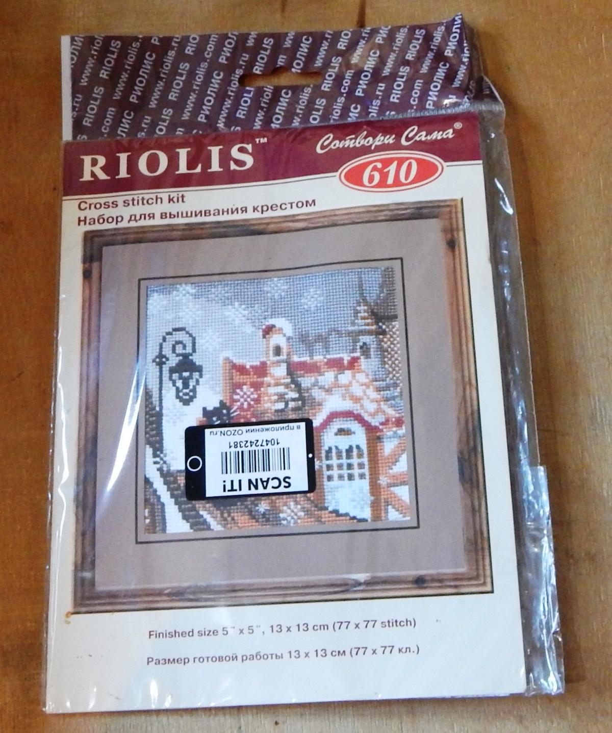 Лот 6. Набор для вышивки крестом Риолис «Домик» (шерсть). Канва 16,. Размер 13х13 см. Цена 150 руб.