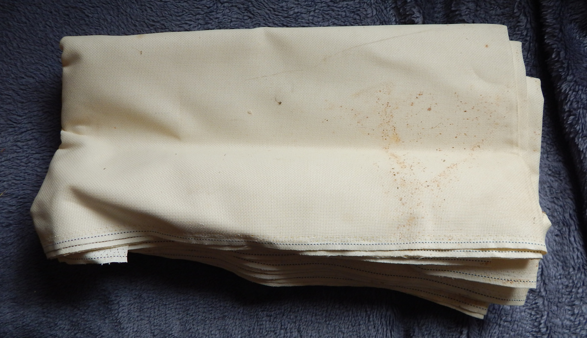 Помимо наборов. Есть огромный рулонище канвы. Цвет — слоновая кость, жесткая. Чуток переплетением на Аиду не похожа, но по жесткости ей не уступит. Каунт вроде как 16, но может быть и 14, у меня ее нет, сравнить не с чем. Но точно не 10 и не 18))) Сверху запачкана жучками-паучками (отстирывается полностью), внутри чистенькая. Не знаю, сколько метров, но очень много. Желательно забрать весь рулон сразу, отмерять и отрезать не очень удобно (но если надо — могу заморочиться с этим). Идеально тем, у кого есть кружок вышивания, обеспечите своих подопечных на всю оставшуюся жизнь)))