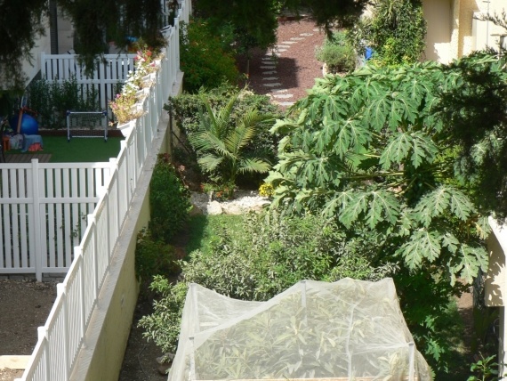 пошла сфотала сейчас это из кухни, на восток застройка у нас плотная, мой дом выглядит почти так же как те что напротив, только мой окрашен в белый( был когда то белым) старые дома застройки начала 70-х, а это из спальни, она у меня угловая, одно окно на восток, вид тот же что и из кухни, а второе окно на север видно только бугенвилью , там за кустами котедж, его немного видно из зала, он тоже на север вот немного видно его огород а это тоже из зала новостройка, в одной части люди уже живут, вторую дальнюю еще строят, вот на днях заложили плиткой двор, а так была грязища,