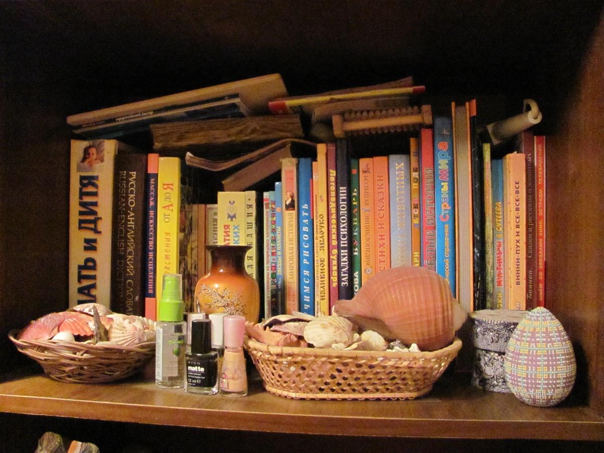 Книжный шкаф у меня с виду скромный, но на самом деле книги в нем стоят в три ряда (он глубокий), ещё примерно столько же книг в маминой стенке и столько же на чердаке (самых старых и потрепанных). Если бы мне всегда хватало денег на книги, их было бы ещё больше. Читаю разные жанры. В юные года конечно мистика и фантастика, сейчас больше классика. Обожаю Г.Г. Маркеса и Э.М. Ремарка, в тихом восторге от А. Грина. Любимейшая книга, зачитанная до дыр — «Мастер и Маргарита».