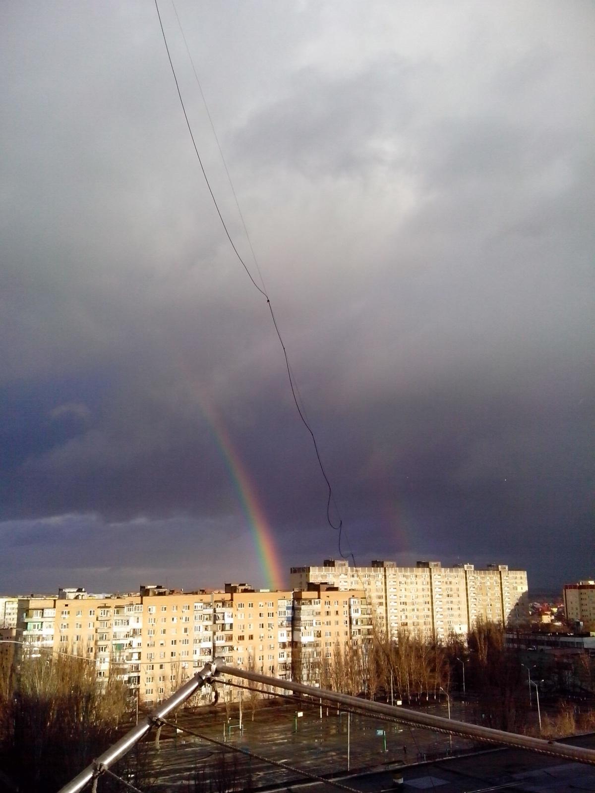 В городе дождь, а также по области… А у нас радуги!!! Спонтанный флешмоб. Скоро во всех городах страны ( а где-то уже ) появится снег, и начнётся зима. Давайте перед зимой поделимся яркими радугами? У нас я сегодня вот такую поймала, только сфотографировала, как всё заволокло тучами и она исчезла…