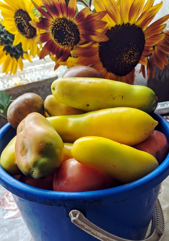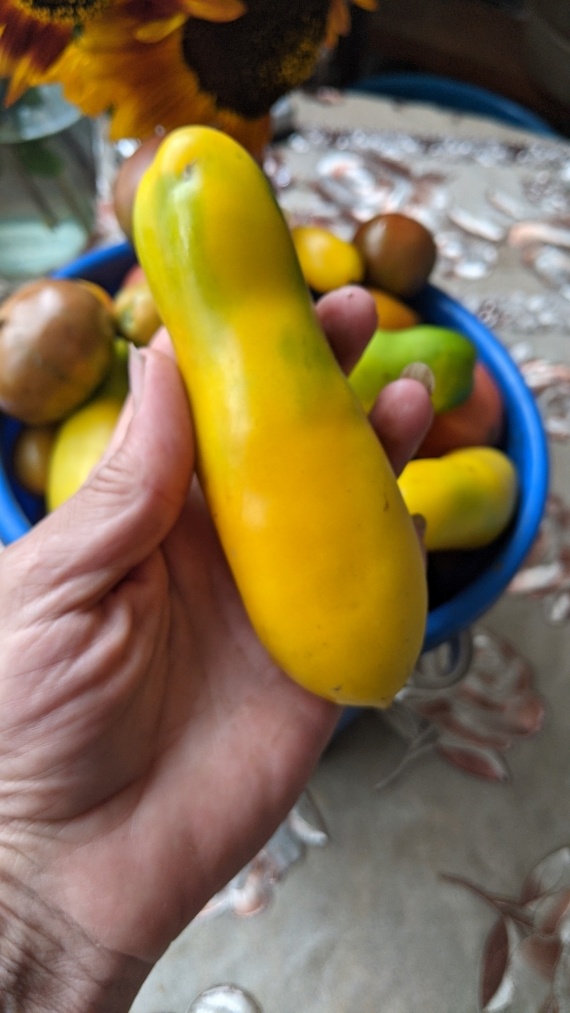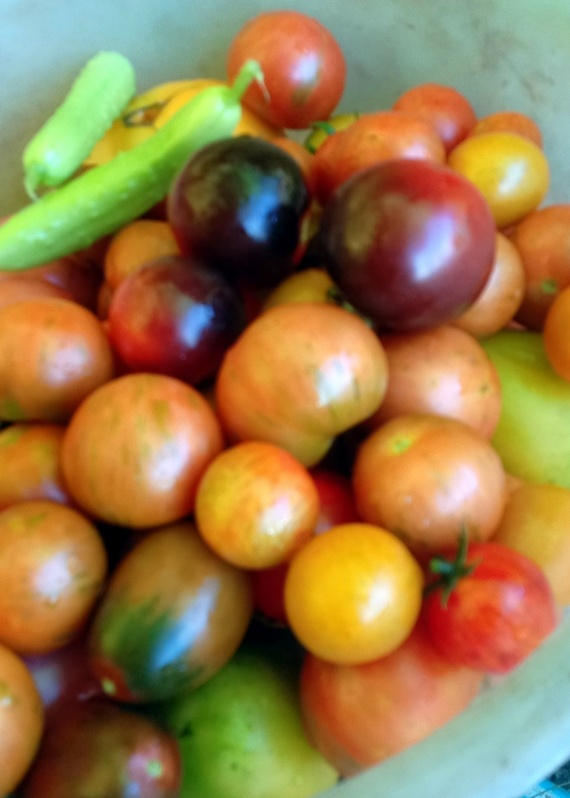 А вообще-то у меня помидоры, в основном, черные, перцы фиолетовые, огурцы белые, а баклажаны зеленые))) Всё, как положено диким огородникам))