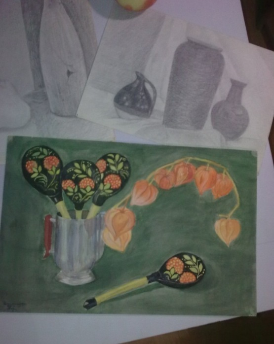 Потом осмелела и в подарок маслом нарисовала фрукты, ага