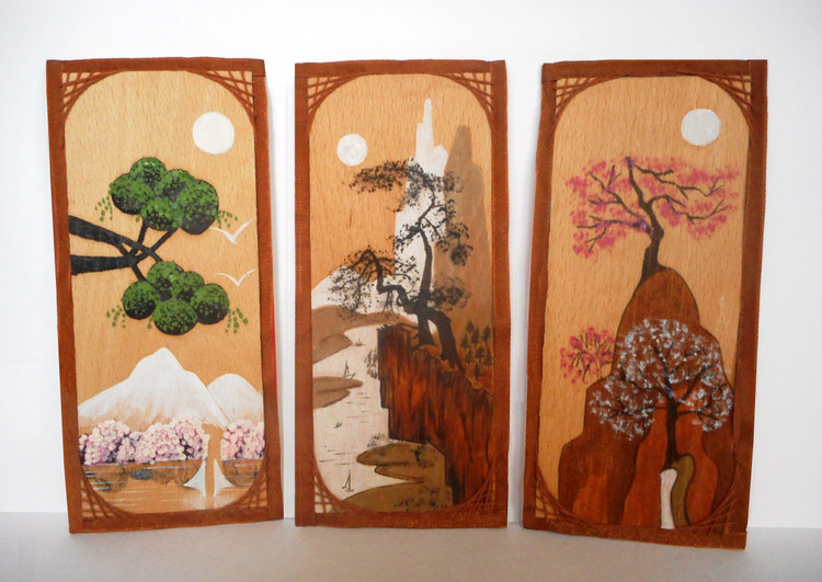 Написано маслом на шпоне, где-то в начале 90-х годов. Рамок не было, делала из ленточек и ниток. Как говорится — из того, что было, то и сочинила…