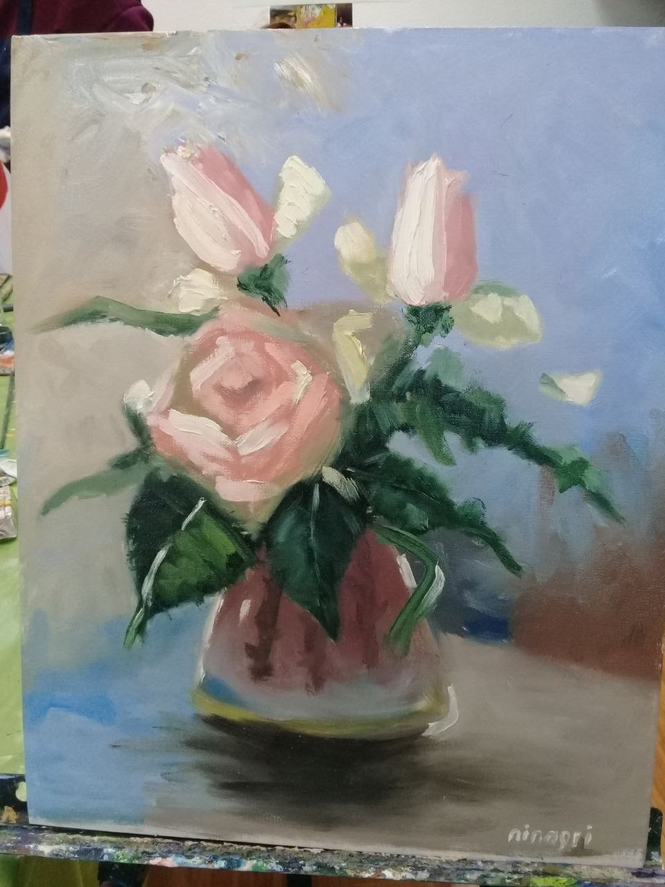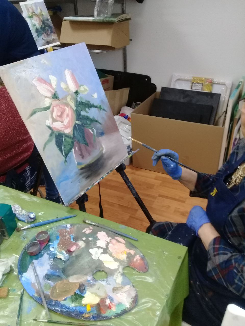 Хотя я и говорю, что не рисую совсем, но это заветное желание где-то далеко-далеко запрятанное. И вот моя бывшая главбух видимо это почувствовала — подарила на ДР как-то билет на сеанс урока по рисованию красками. Я краснела и бледнела и не знала что сказать. Но результат вот он