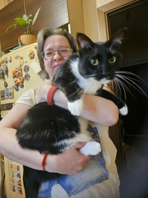 Дымок. Подобрашка, найден и притащен Светланой Сергеевной. Был нещадно бит моим котом Барсиком (увы, мой любимец бесследно пропал), возила на операцию в ветеринарку, потому и голова сине-зеленая))) Вырос красивый, умный котей, участвует во всем абсолютно, ходит следом как собачка, и охотник первоклассный.