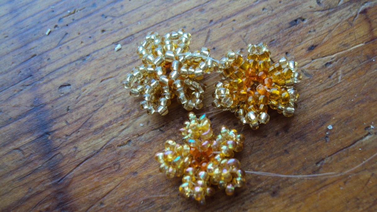Сегодня руки к ночи плести не хо совсем, решила порыться в закромах и нашла цветики, 3 штучки. Хорошие цветики, но как плела, хоть застрелите, не могу вспомнить и записей никаких не делала, только фото в готовом виде. Повторить хочется ибо из китайца сплетено, а из хорошего бисера в стопитсот раз лучше получатся. Все что вспомнила — плела на одной нити, по кругу, оба слоя одновременно, из головы как говорится. Вот думаю расковырять один чтоб память освежить или нет…