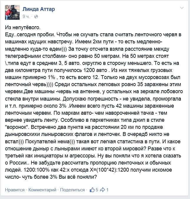 Немножко задело — «Русский с георгиевской ленточкой — это русский, который готов бороться и заставит с собой считаться.» — очень жаль, что русскому человеку без ленточки автор в готовности бороться вроде как отказывает.