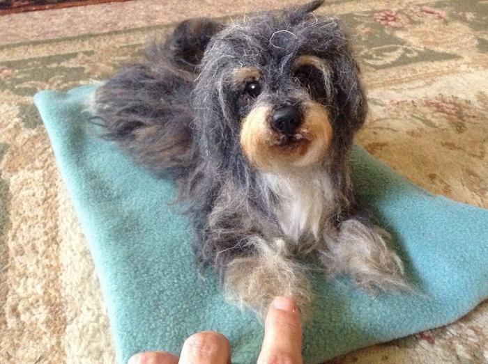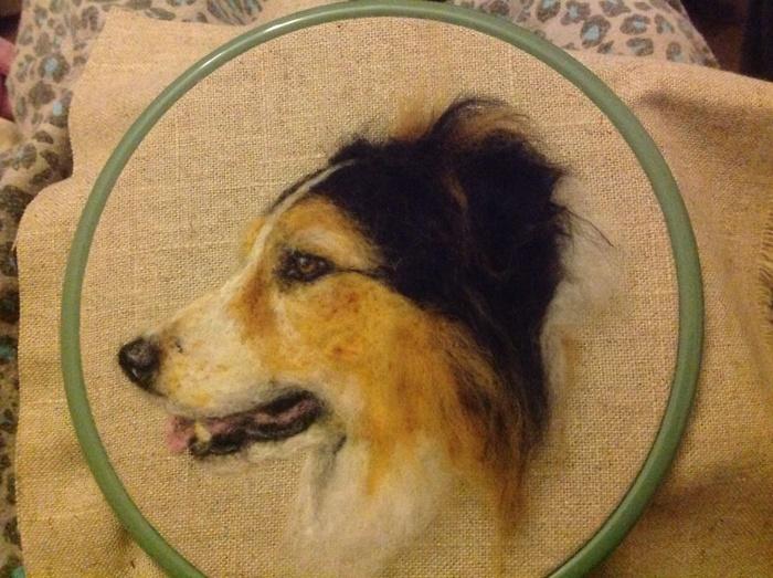 Портрет колли. Автор: Chicktin Creations.Синди Томпсон (Cindy Thompson) из Англии организовала свой маленький бизнес, выросший из давнего хобби, в 2012 году. Тогда она стала под ником Chicktin Creations продавать маленькие статуэтки собак, сделанные из войлока. Ее творения выглядели настолько замечательно и реалистично, что владельцы собак засыпали ее заказами, желая иметь у себя маленькую копию своего любимца.