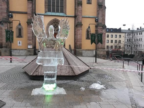 Мы решили прогуляться по рождественскому базару и проверить, а не делают ли где-нибудь еще такие скульптуры. Нет, наша была единственной. Но когда мы к ней вернулись, то у нее появилось крыло!