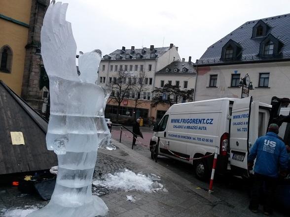 Сегодня уже католическое рождество, а снега даже приблизительно нет… И для компенсации город решил порадовать нас ледяной скульптурой. Я никогда их не видела и, конечно, решила посмотреть. Когда я приехала, скульптура выглядела так: