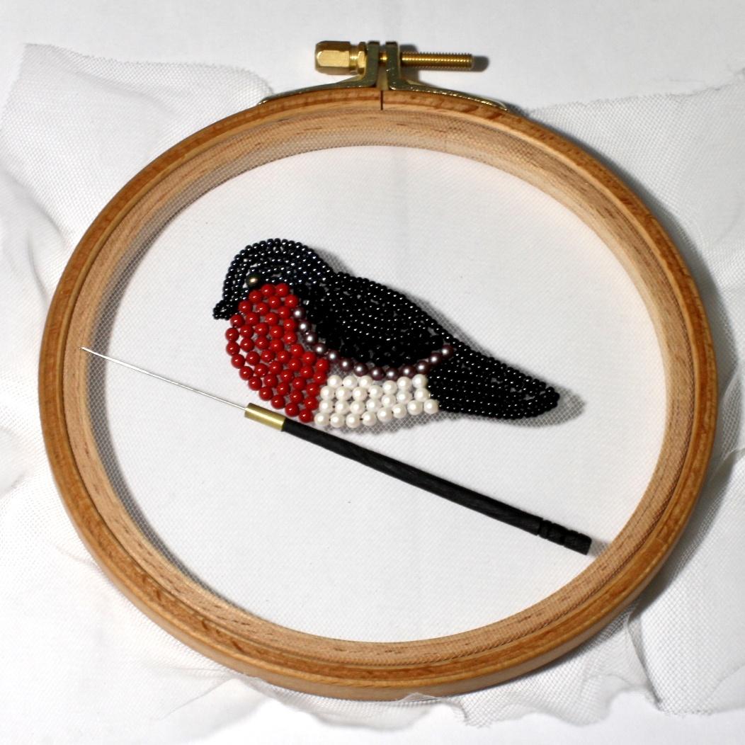 Планирую 2 части, первая — вышивка снегиря, вторая оформление его в брошь.