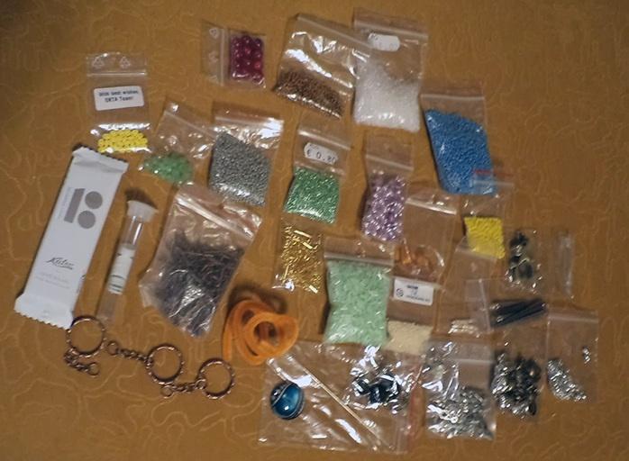 Сорри за качество фото. Бусинки-бисер-фурнитура, прикольная очень длинная игла, кабошончик-глаз, синельная проволочка и ещё одна заплутавшая шоколадка (сохранилась только на этом фото). И мыши. Много мышей. Мышами меня Ксю обеспечила по полной программе.