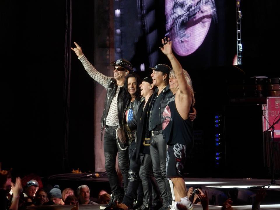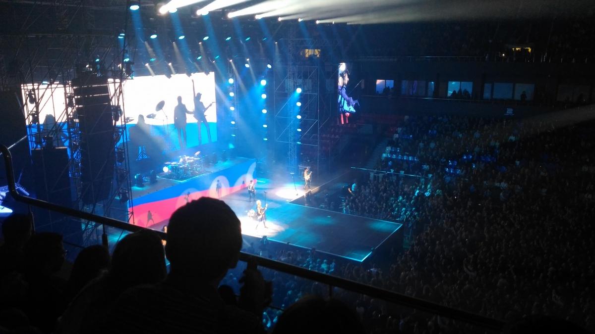 В этом году особенно заметно, что Клаус начала сдавать. В первых песнях верхние ноты не вытягивал, потом распелся и зазвучал на верхах изумительно, зато поплыли нижние ноты… Причем это не только мне подкинул очередную каку мой абсолютный слух, это даже Натаха с ее обычным слухом уловила. Но, тем не менее, уже то, что они выходят на сцену в таком возрасте (самому молодому участнику группы 52 года, а Клаусу и Рудику вообще по 69), и так отрываются, вызывает искреннее восхищение. И на их концерты я буду ходить даже если Клаус вообще петь перестанет и будет текст декламировать. Так что это обстоятельство нисколько не испортило впечатление от концерта. Кстати, буквально перед самым началом этого гастрольного тура прошла информация, что Клаус заболел и потерял голос, даже побаивались, что концерты отменят. Так что не удивлюсь, если эти голосовые неувязки связаны как раз с болезнью, долечиться не успел. И в следующий раз вокал будет на прежнем высочайшем уровне.