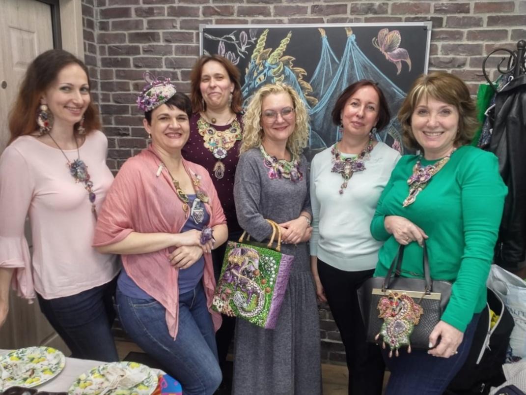 Работы сделали на все вкусы: колье, кулоны, серьги, кольцо, сумка, шапочка