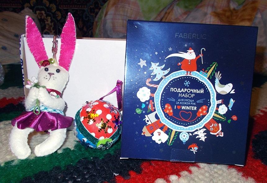 Зайка, шар на ёлку и крем.