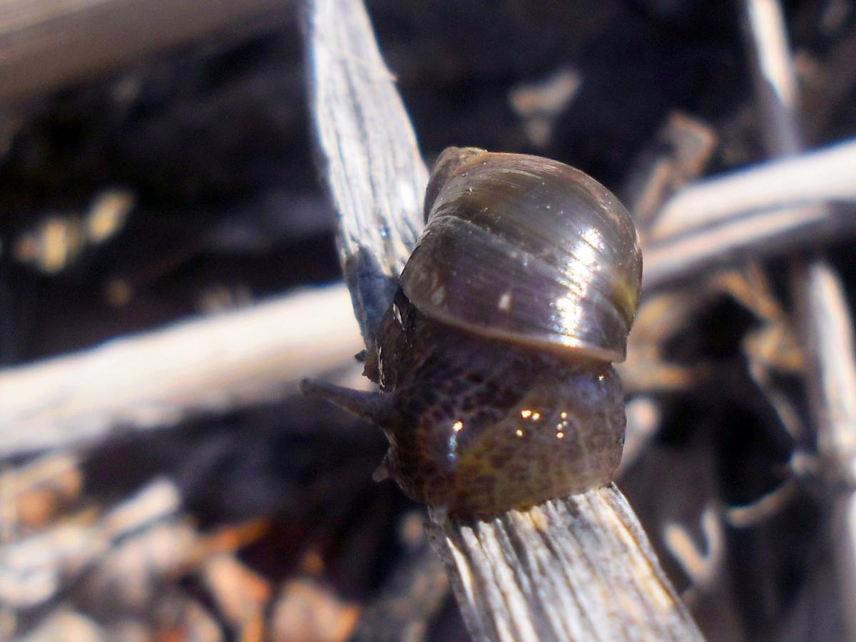 Ближе к воде обнаружила кучу суетящихся (если можно так о них сказать) улиток. Выбрала «жертвой» одну и нервировала ее минут 15, пока она переползала канавку по сухому стебельку.
