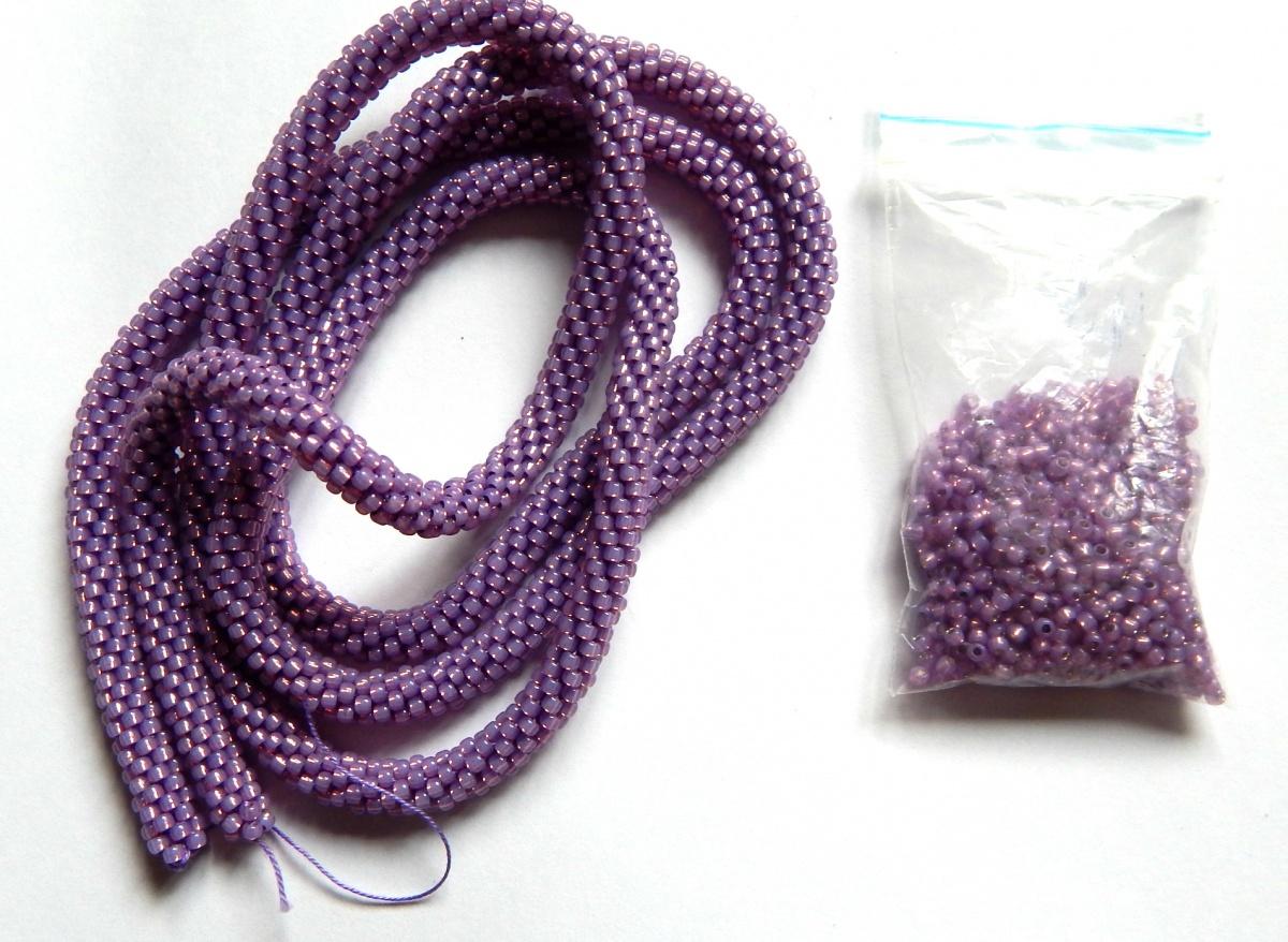 Ну и вот он, красивенный переливающийся шнурочек, вместе с запасом бисера и «прилипшими» двумя пакетами других цветов