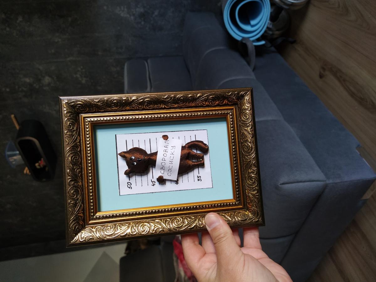 Картинка с котом. Уже примостилась рядом с сувенирами от других бусинок, присланных в разное время.