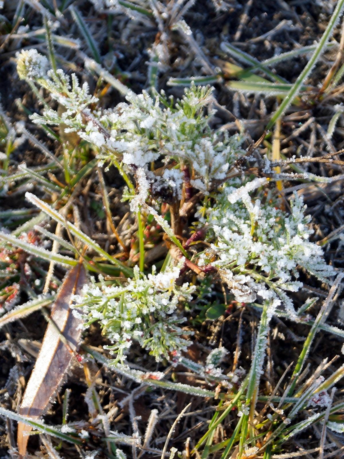 Да, с утра все покрыто инеем. Особенно впечатлили посеребренные «стеклянные» ромашки.