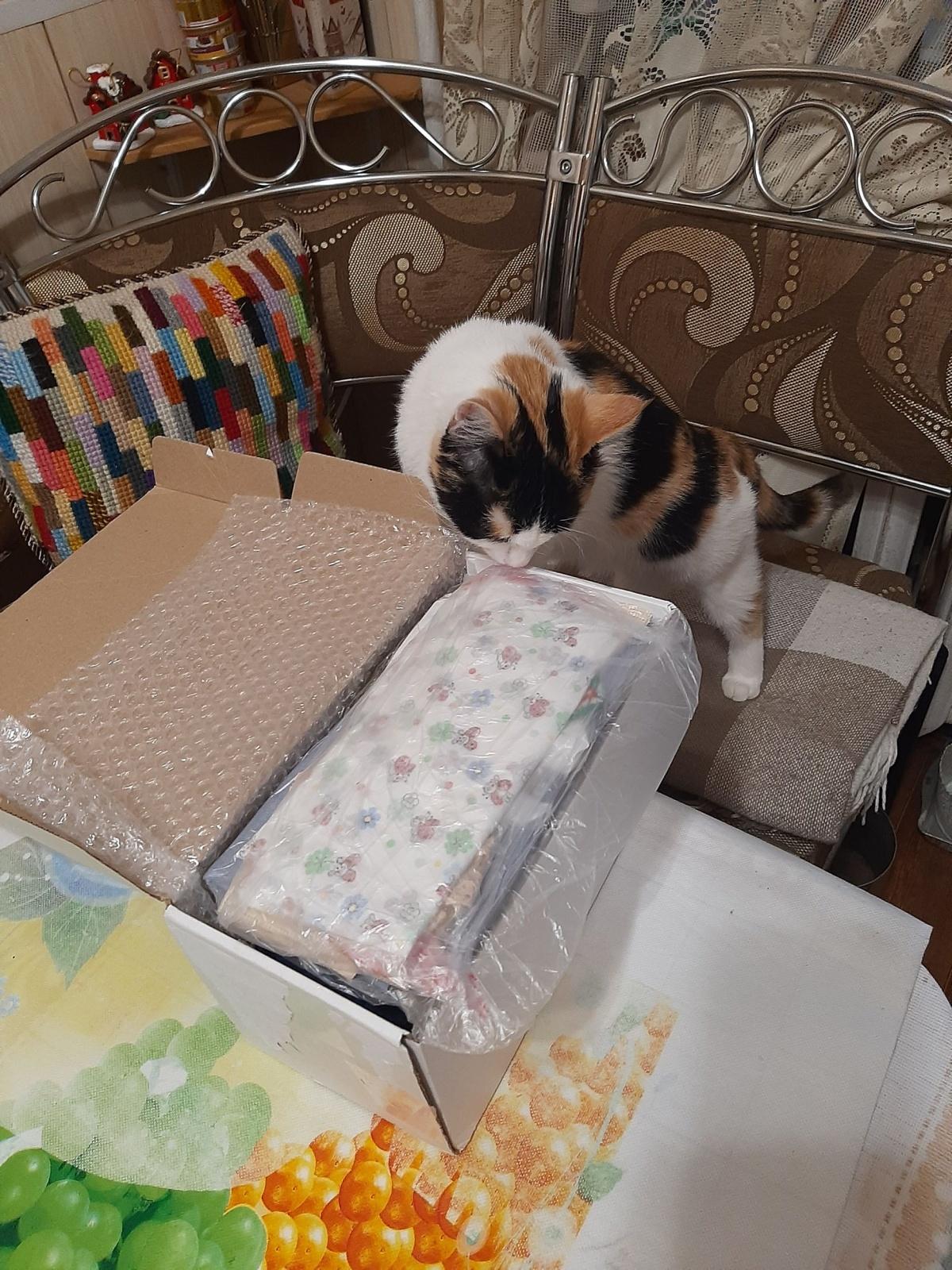 Не успела мявкнуть-мне уже от Татьяны(mambush)ответка прилетела, с утра мы с Лукерьей затихарились на кухне и полезли в коробку, ее(коробку) аж по бокам распирало, чего там только не было-все нужное и душевное-лоскуточки красивые, мягкие, тесьма разная(все в мешок, в мешоооок), хомяку радости полные штаны-полдня все разбирала, раскладывала и «чахла» аки тот кощей… Луша-вот есть ворона хвостатая-чуть не утянула пакет с блестящими бусинами… ну все тырит, прям беда… нямка, блокнот и ручку супружник уже отжал-пришлось делиться,, носочки маман утянула, деревянную заготовку раскрашу и подвешу на люстру, сушеные укроп и шиповник-ваще слов нет, украшения-это просто песня, надо припрятать-невестка как Луша, узрит новенькое блестящее-на себя примеряет...! в общем-не посылка, а сказка!!! Татьяна Германовна, спасибо огромное, я очень довольна, у меня весь день сегодня замечательный!!! смотрите теперь фотки-завидуйте---
