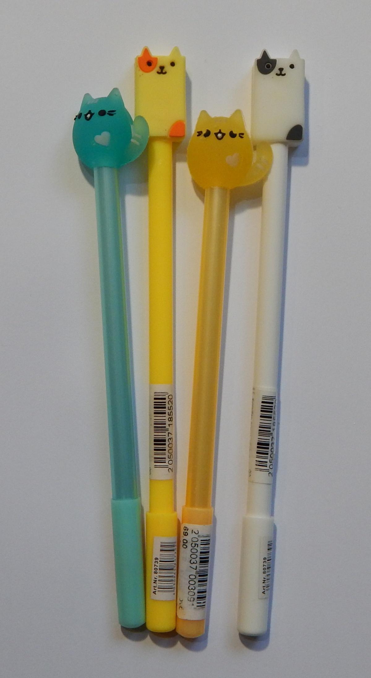Первыми мелочь вытащила ручки с котиками. Ну понятно, что все, что с котиками — это ее)))