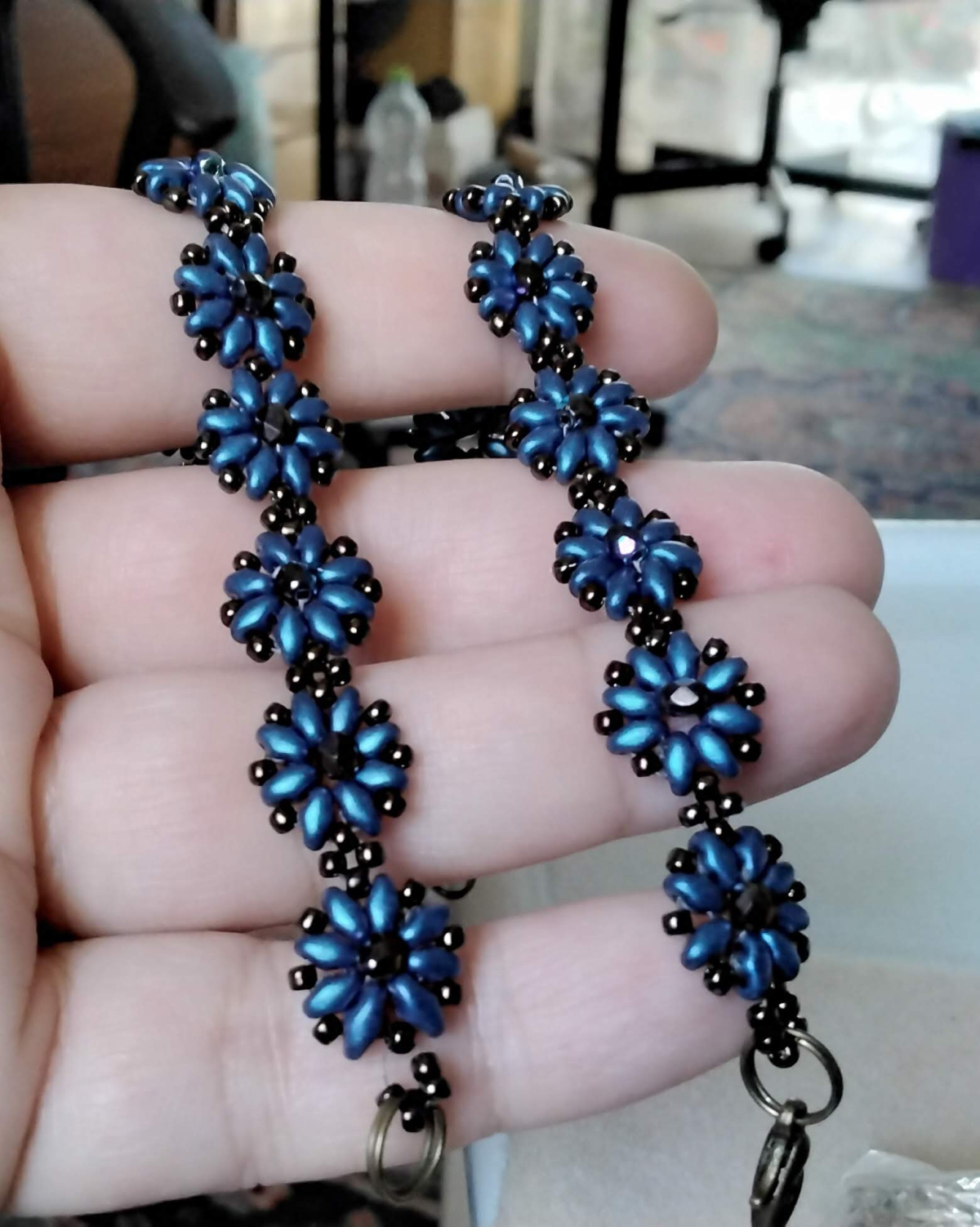 Можно предложить вместо застёжки бусинку с колечком-петелькой, но в таком случае придётся всем помогать, так как люди не умеют расчитывать количество бисеринок для идеальной петельки и крепко затягивать эту петельку, чтобы не сваливалась с бусинки.