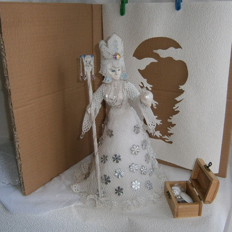 По поводу Василисы. Другой вариант — горница-светёлка. Лес зрелищнее, конечно, но труднее делать — это же довольно большая и сложная флористическая композиция… А можно на Василису посмотреть? Это вот эта работа?