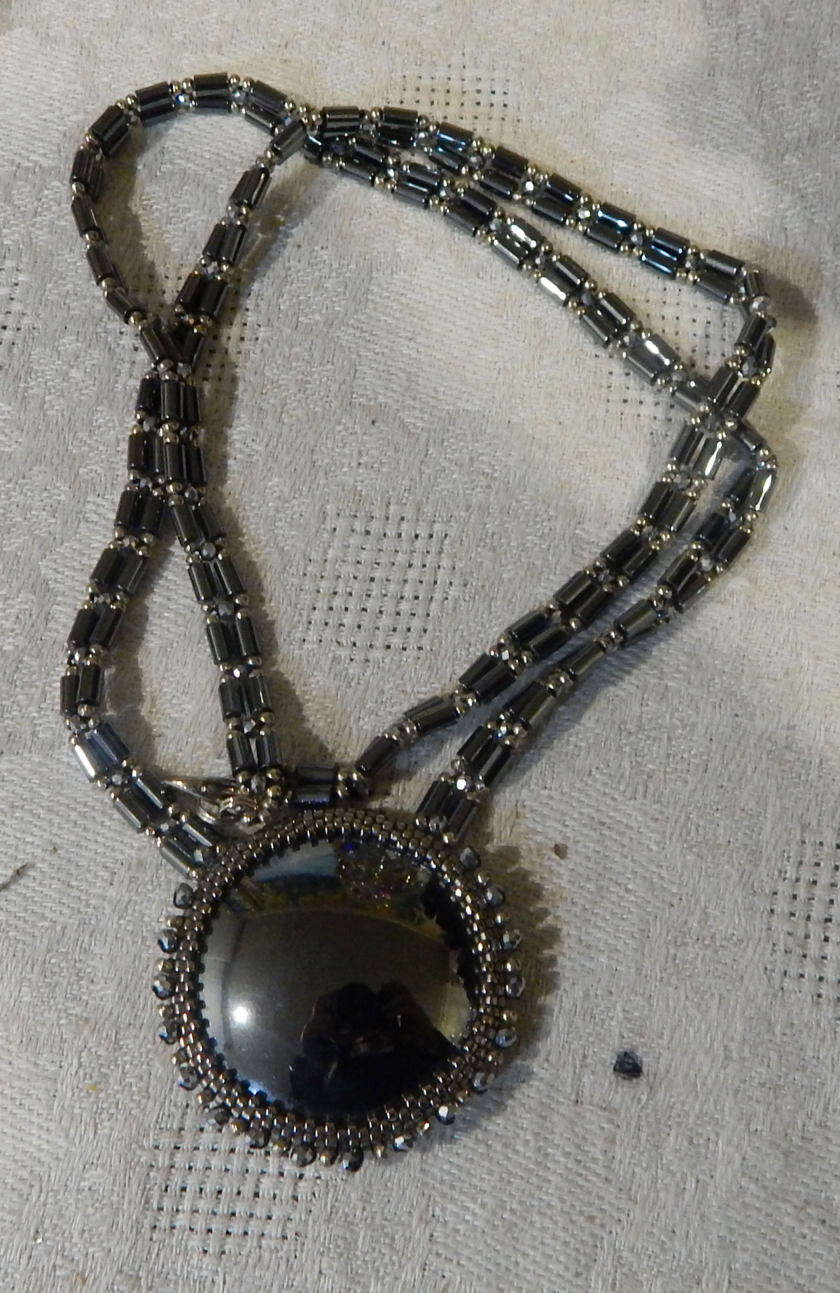 И — тадаммм! Шикарный гематитовый кулон. Гематит обожаю, минимализм обожаю, да еще и выполнен безупречно аккуратно. В общем, влюбилась по уши с первого взгляда!