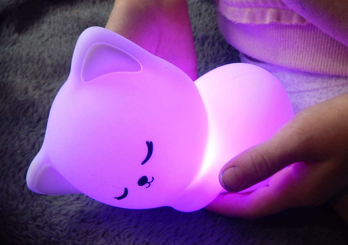 Собственно, Светлана Сергеевна по-любому не осталась бы без сюрпризов. Хотя Иришка и прислала практически ей одной прошлую здоровенную посылку, она и в этот раз подарками не обделила. Приехал вот такой замечательный сенсорный котенок-ночник. Он еще и цвета меняет. Красота!