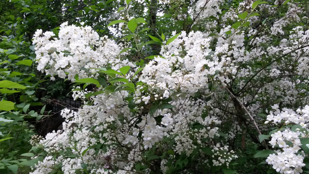 Дейция стоит вся белая, как облако, но сфотографировать ее довольно сложно