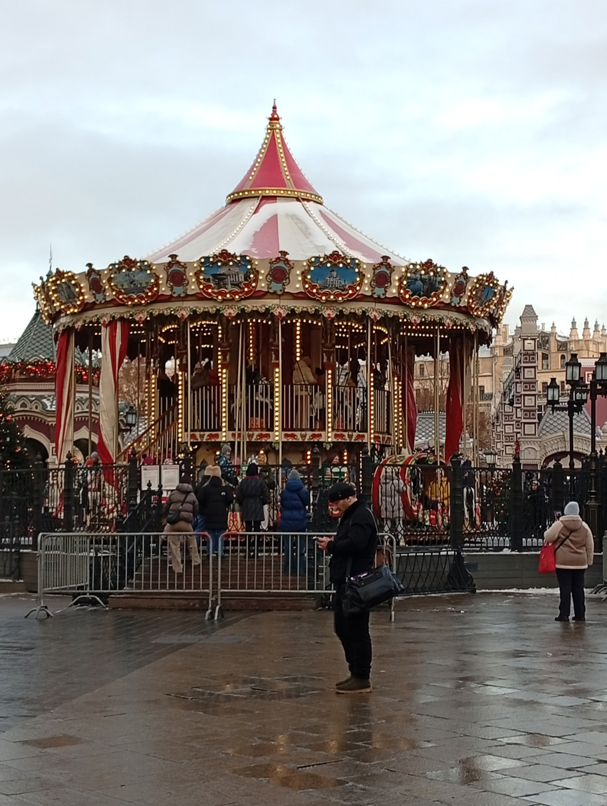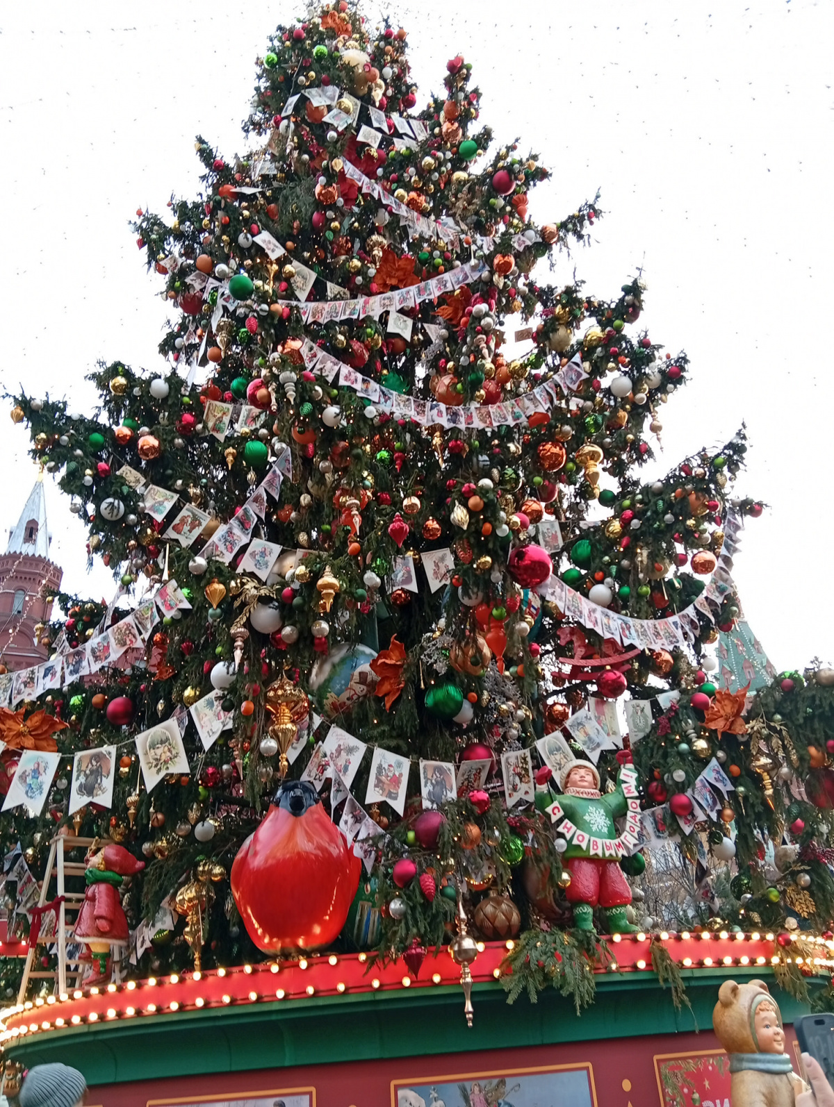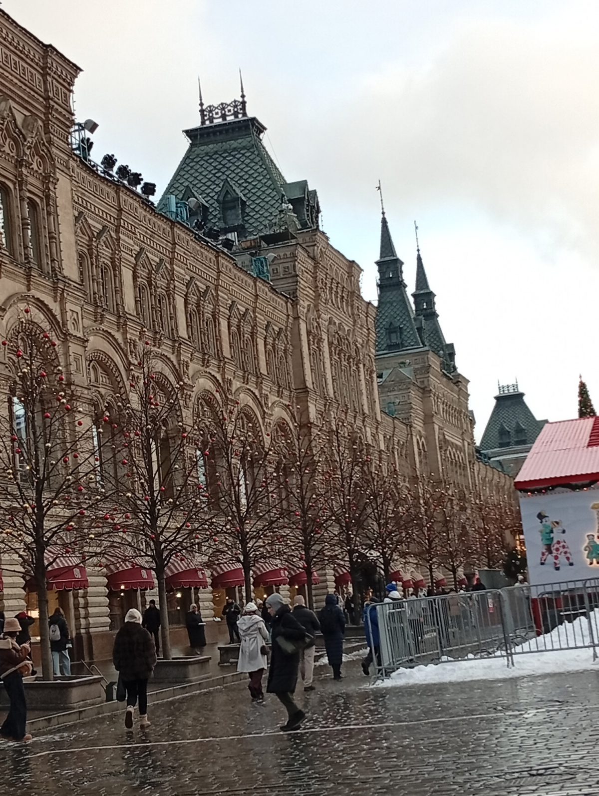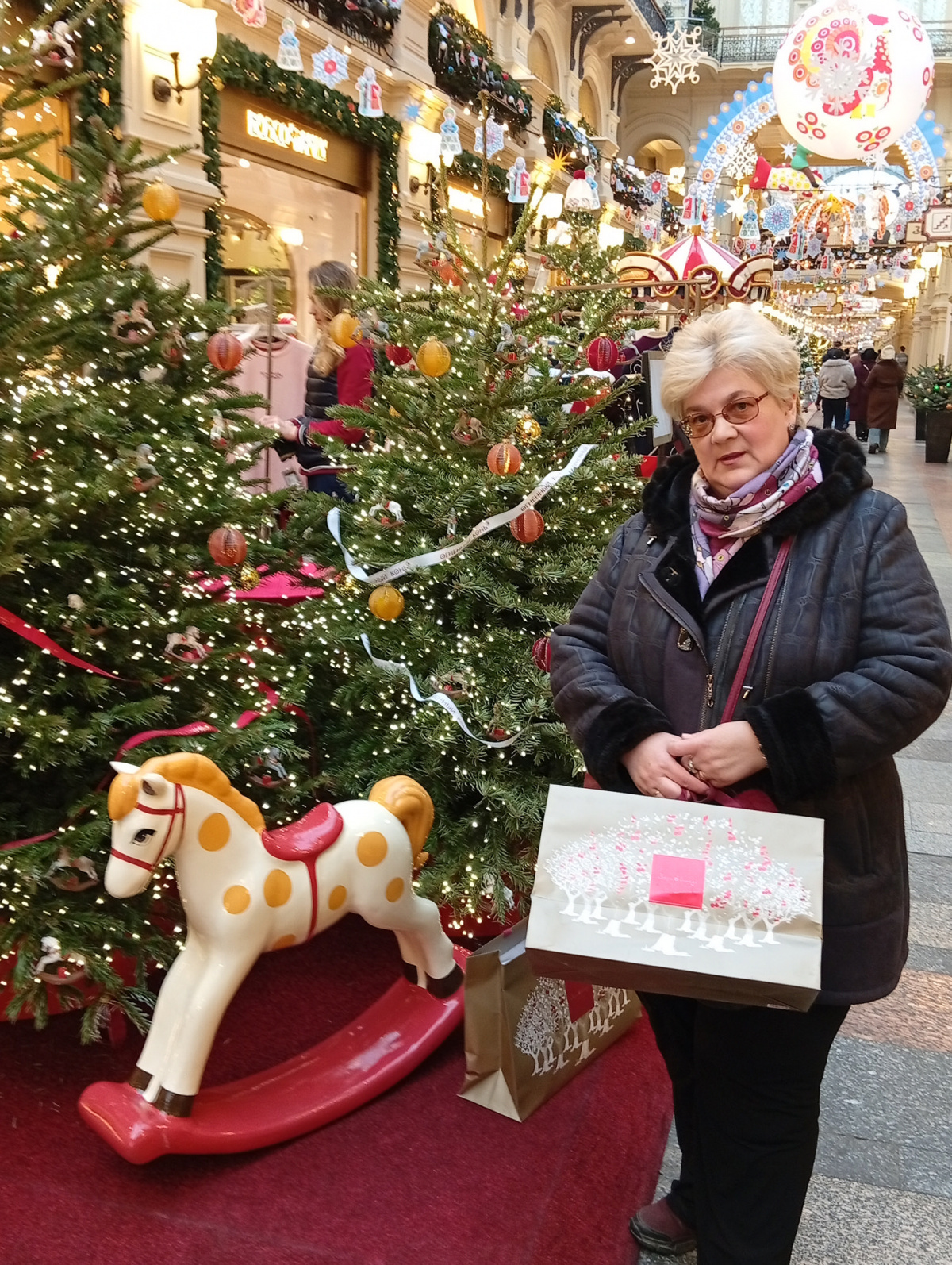 По устоявшейся традиции съездили в Москву-украшенный к НГ центр посмотреть, маршрут не меняли-Пл Революции, Манежная, потом через Красную пл в ГУМ, выход на Никольскую и по ней к метро и домой. Народу было немного, ноги не оттаптывали(и такое бывало), на Манежной в украшенной зоне много артобъектов, много живых елочек, полно фотозон с умом созданных, вдоль ГУМ-катка-палатки -сувенирные и с едой, музыка приятная, после катка, ближе к Василию Блаженному- городок аттракционов. В ГУМе как всегда-выставка елок от торговых точек, очень классные, многие понравились, а вот центральная мне как-то не очень, как есть сугроб-она белая. в этом году вся серия украшений стилизована под Дымковскую игрушку, калоритно, после посещения ГУМа и поедания обязательного гумовского мороженого прошли по Никольской с непременным заходом в магазин фабрики «Новая Заря», чуток там прикупили, потом метро, автобус и мы дома, довольные