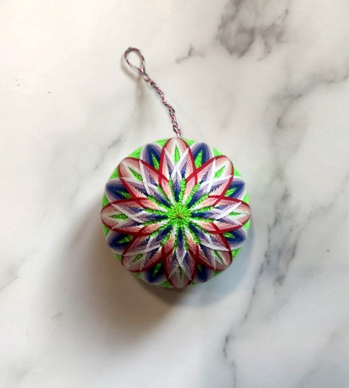 А вот эту прелесть я впервые живьем увидела, до этого только на фотографиях смотрела. Шарик темари. Очень тонкая работа, с запредельной аккуратностью. Еще и с двух сторон разный. Это что-то невероятное…