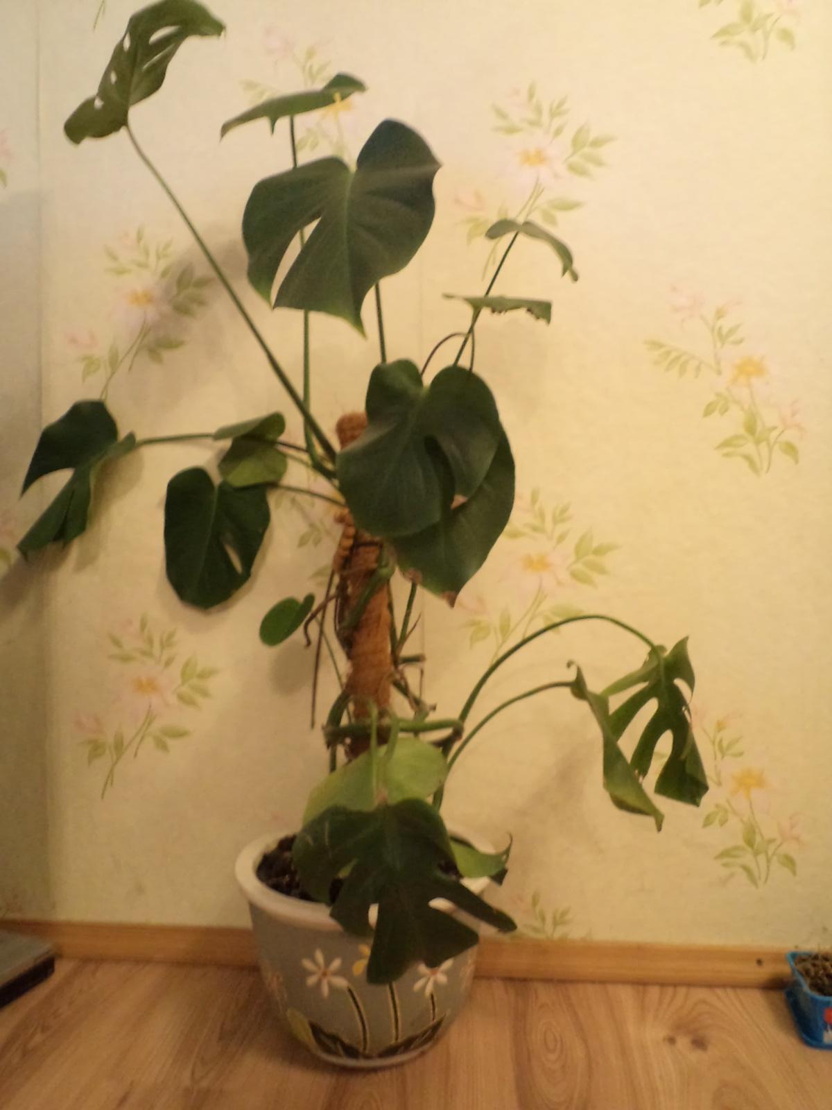Так же у меня растёт монстЕра — кршка её очень любит грызть, хоть это и вредно. Гоняю, как могу.