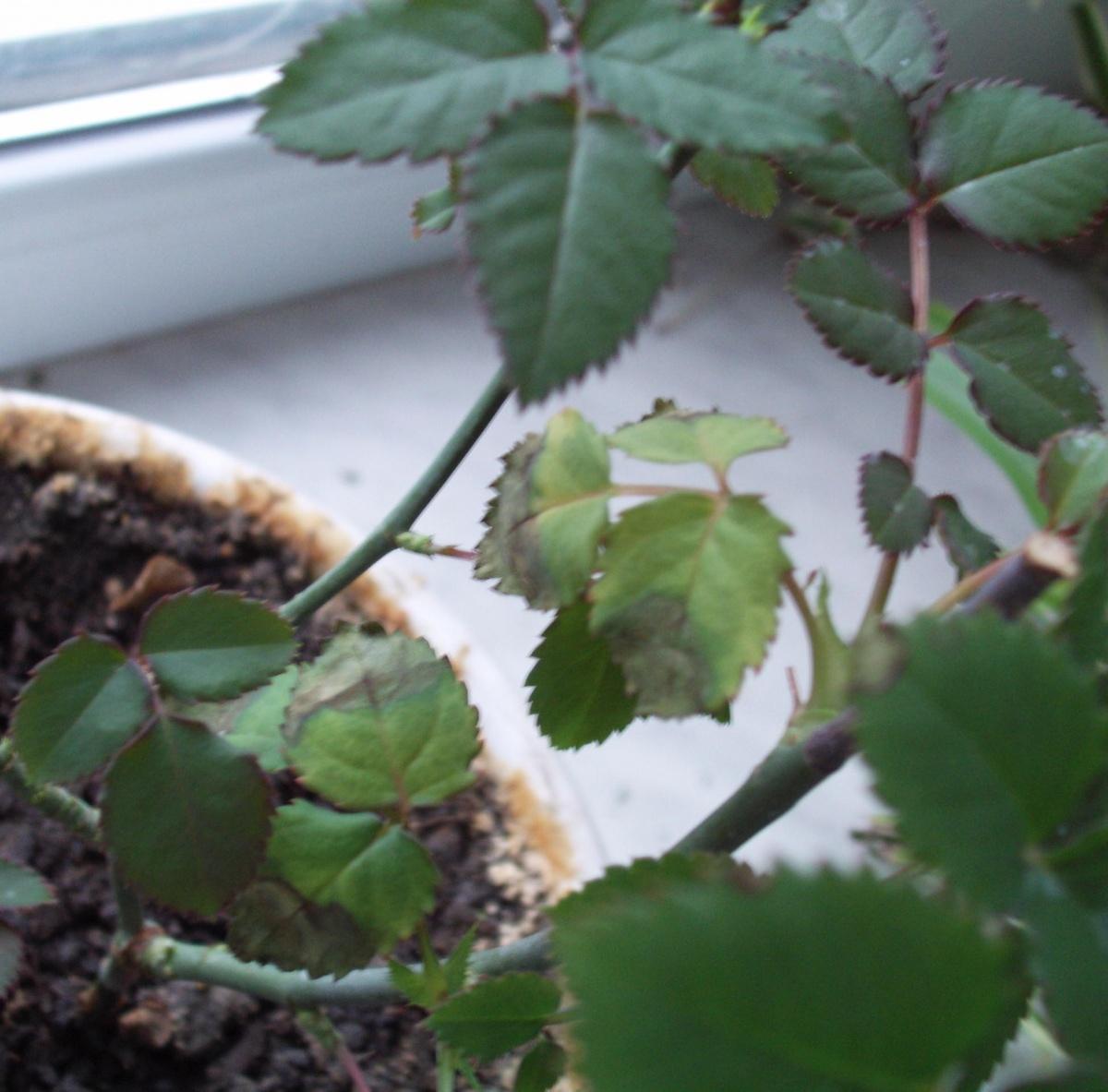 Прошу вашей помощи в спасении комнатной розы от рук хозяйки-чайника (то есть моих). Подскажите, отчего могут подсыхать листья у розочки? Она была обрезана осенью, перезимовала, сейчас пошли новые ростки, но нижние и средние листья подсыхают. Полив, подкормку и опрыскивание она сейчас получает. Как мне ее не загубить окончательно, не знаю. Выручите бедное растение!