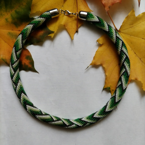 Когда я только начинала заниматься бисером, то скупала все подряд. Коричневый цвет я не люблю, но зачем-то мне понадобился этот камень. Пролежал он у меня без дела года три. Но потом случайно рядом с ним оказались мятные...