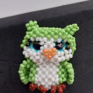 Опять плету игрушки свои. Вот сова… зеленая, как по схеме, не стала менять. С ошибками: ушко кривовато, и глаза — впервые сделала из кабошонов, напутала, но не стала менять....