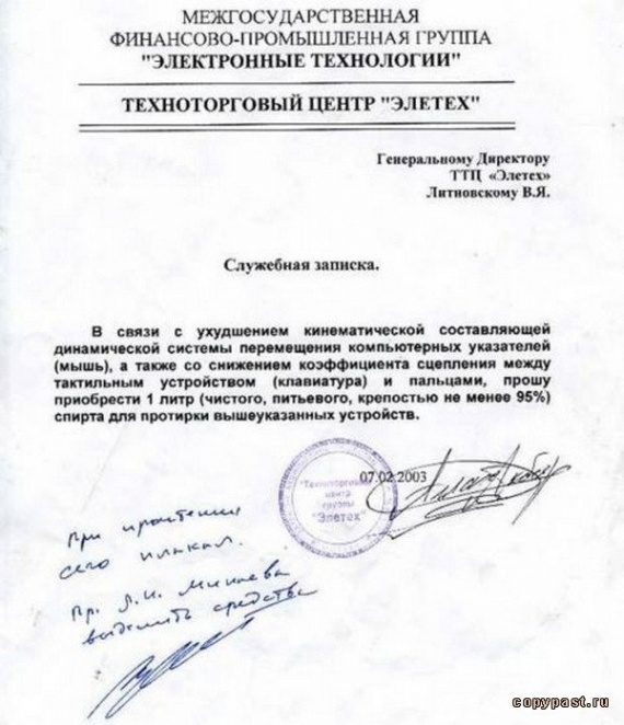 Я его распечатала на нашем фирменном бланке от имени програмиста и сунула заму директора в папку «На подпись». Через какое-то время выскочил зам с листком в руке и помчался к програмеру. Вопли было слышно по всему офису: Валера, ты совсем офигел! Я это не писал! Потом они видимо сообразили, какое число, начали ржать, пошли показывать директору, а потом ко мне, говорят — это ты прикалываешься! Я — с чего вы это взяли? А больше никто таких слов не знает! (плохо слыть умной