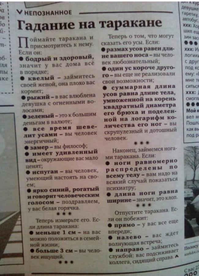 Думаю, мож подать объявление на сайт купли-продажи. Мол приму в дар таракана для гадания на нём
