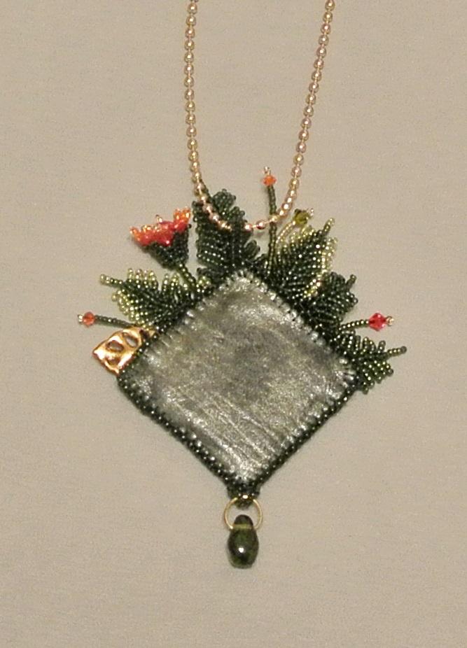 Размер работы совсем небольшой, все плела из пятнашки. Листья папоротника сделаны по МК NATYY.